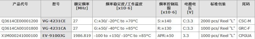 愛普生振蕩器VG-4231CA規(guī)格