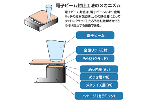 電子束照射被精細(xì)地收斂,所以能夠高精度地控制銅焊材料的熔點(diǎn)范圍。因此,能夠減少比縫焊的密封部分的寬度被一個(gè)共同的密封方法是一個(gè)晶體振蕩器,這大大有助于產(chǎn)品的小型化。