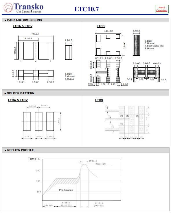 Transko晶振提供的LTCV和LTCS系列產(chǎn)品的特征是體積小、重量輕、外形小巧,LTCV的尺寸封裝是7030mm,LTCS的尺寸封裝是3.45mm×3.1mm,它們可以自動(dòng)安裝和回流兼容,工作溫度是 -40°C至85°C,存儲(chǔ)溫度為-55℃至85℃。