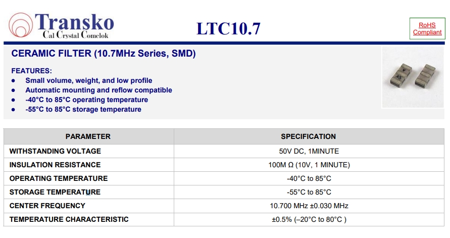 Transko晶振推出的遙遙領(lǐng)先的LTCV和LTCS產(chǎn)品可替代村田停產(chǎn)的陶瓷過濾器系列