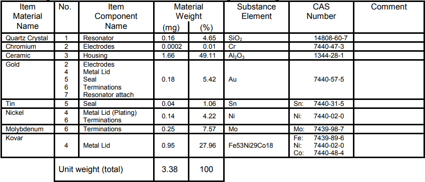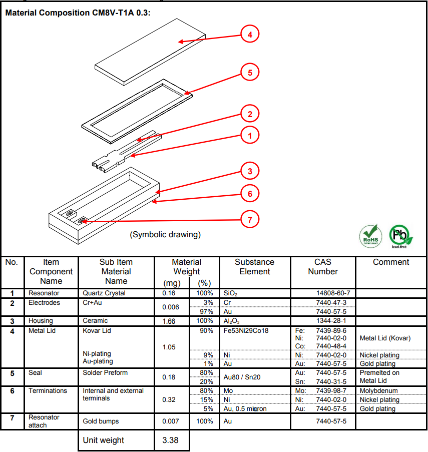 CM8V-T1A 0.3晶振材料成分聲明和環(huán)境信息