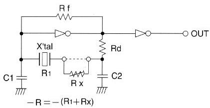 負(fù)電阻是電路通過電路去抵消水晶振動(dòng)子的電阻RL從而達(dá)到振蕩的能力.但僅此一點(diǎn)并不可以達(dá)到穩(wěn)定的振蕩.由于啟動(dòng)時(shí)水晶振蕩子的電阻RL大于恒定的電阻值,因此單獨(dú)的RL對(duì)于負(fù)電阻電阻值是不夠的,為了防止啟動(dòng)時(shí)會(huì)有不良情況發(fā)生,因此,必須有足夠的余量來(lái)防止啟動(dòng)失敗并確保穩(wěn)定的振蕩啟動(dòng).